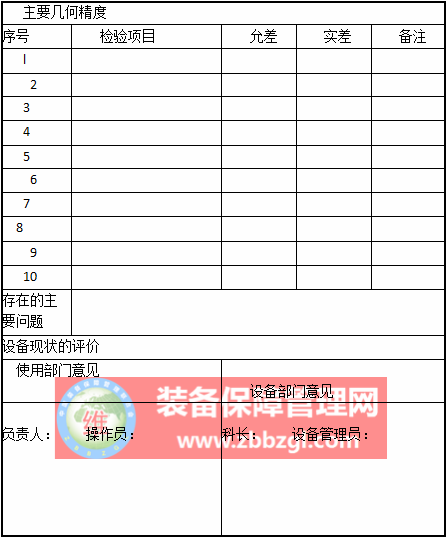 由设备管理员及操作工根据日常点检、定期检查、状态监障修理记录所积累的设备状态统计资料(包括设备精度、检修系数、设备事故损伤情况等),结合年度设备技术状况的普查鉴定结果以及操作工提供的设备情况,经综合分析后,向设备管理部门填报“设备技术状况表” ;并在表中优先将技术状态劣化严重需修理的设备,列入“使用单位意见”栏中(包括修理类别及期望安排修理的时间)。